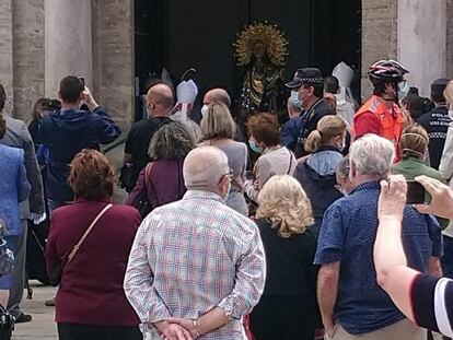 El cardenal Cañizares ha celebrado la misa a puerta cerrada, pero después ha asomado la figura y ha abierto las puertas del templo