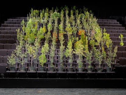 El artista usa público vegetal desde 2015 en acciones similares a la que presentó Ampudia en el coliseo de La Rambla
