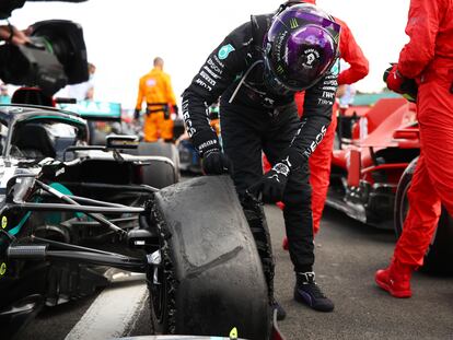 El británico se impone en Silverstone en un final de infarto tras completar la última vuelta con un neumático reventado. Sainz, con otro pinchazo, es 13º
