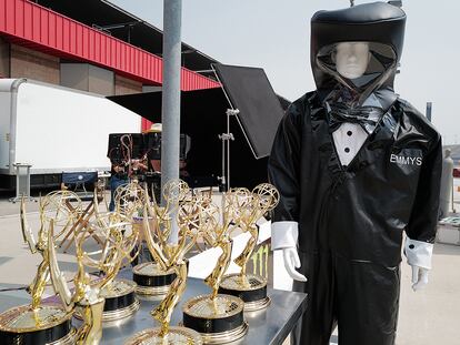 La gala de los premios de la televisión estadounidense ha reclutado un ejército de repartidores a domicilio ataviados con glamurosos trajes de protección biológica.