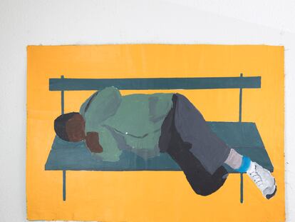 El beninés Didier Viodé pinta a esas personas, a menudo ignoradas, que viven en las calles, y cuyo número va aumenta sin que nadie las vea o haga nada. Muchos, migrantes. Su trabajo se expone en la primera edición de la Feria de Arte Contemporáneo Africano 1-54, en París