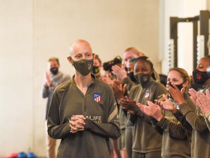 La futbolista, tras superar la enfermedad, vuelve a ejercitarse con sus compañeras. De momento, aún no pisa el césped y se prepara en el gimnasio