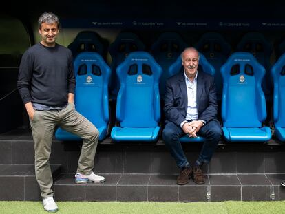 Dos mitos del Deportivo repasan con el exseleccionador la actualidad del fútbol y el agónico estado de su club