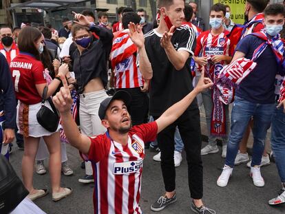 Miles de aficionados del Atlético celebran la victoria en Neptuno entre un amplio dispositivo policial en una noche en la que se habló de lo que es sufrir