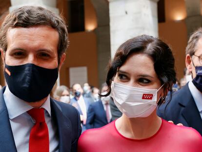 La presidenta madrileña, al jurar su cargo: “Nunca hemos tenido miedo a la libertad, solo a perderla” | Casado acompaña a Ayuso en su toma de posesión | La presidenta fue investida en el cargo el viernes con los votos de PP y Vox tras un tenso pleno en la Asamblea