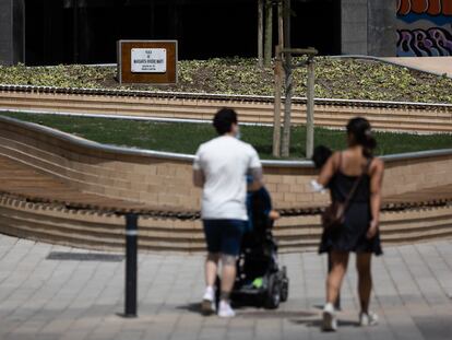 Una placa en un espacio moderno y florido recuerda que fue periodista de Barcelona. Una de las buenas