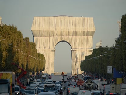 El icónico monumento de París permanecerá cubierto hasta el 3 de octubre en el montaje póstumo de esta obra que los artistas comenzaron a proyectar en 1962