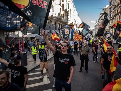 Unos 200 ultras recorren el centro de Madrid al grito de “fuera maricas de nuestros barrios”. Hay un detenido por agredir a otro manifestante