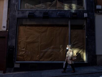 El letrero, que es dorado, aún brilla un poco, pero el escaparate está cubierto de un papel marrón que impide ver que en el interior ya no hay estanterías llenas de botitas de crío y zapatillas de estar por casa de viejo sino nada