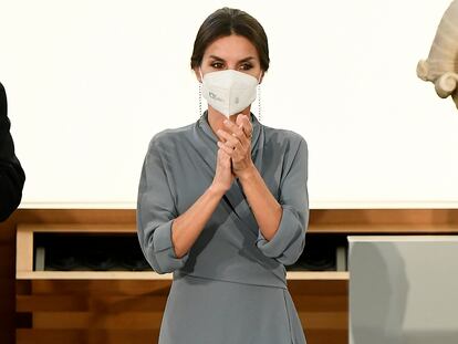 Doña Letizia quiso rendir homenaje al creador gallego estrenando un diseño ‘midi’ con escote en pico cruzado firmado por él.