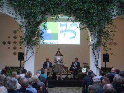 Representantes del mundo económico y periodístico asisten a la presentación de la obra en el Palacio de Malferit en Valencia