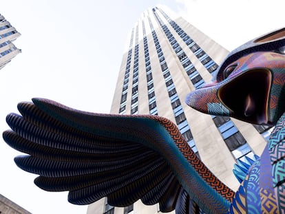 Dos alebrijes de la cultura zapoteca de Oaxaca y esculturas alusivas a la tradición del Día de Muertos forman parte de la exposición que inaugura la Semana de México en Estados Unidos