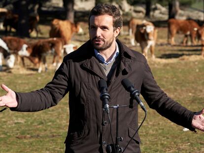 El líder del PP carga contra el ministro Garzón por sus palabras contra las macrogranjas desde una explotación de ganadería extensiva como la que defendió el titular de Consumo