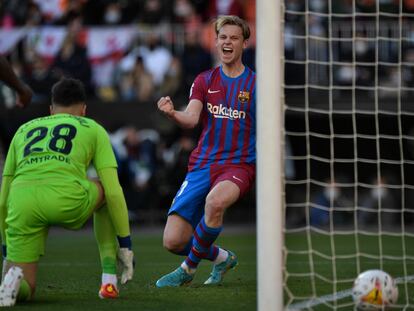Un doblete de Aubameyang y dos tantos de Frenkie de Jong y Pedri sentencian por la vía rápida al Valencia
