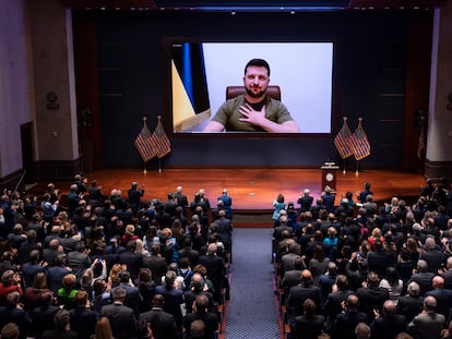 El presidente ucranio ha intervenido por videoconferencia ante las dos cámaras del Congreso estadounidense