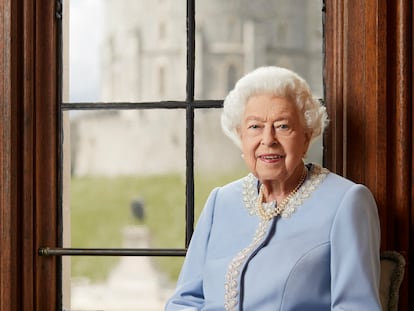 La monarca británica ha sido fotografiada en Windsor, su castillo favorito, en una imagen difundida el primer día de los festejos por sus 70 años en el trono