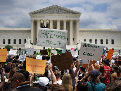 Cientos de manifestantes se han concentrado a las afueras de la Suprema Corte en Washington, unos para celebrar y otros para deplorar la decisión de los jueces