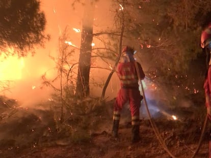 El fuego, provocado por un rayo el domingo, estaba estabilizado hasta que el viento lo reactivó este lunes y se desbordó en el municipio valenciano