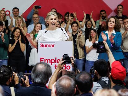 “Quiero ser la primera presidenta de mi país”, asegura la líder de Sumar, que ha presentado las líneas maestras de una nueva “carta de derechos” para la próxima década, rodeada de una docena de fuerzas políticas, pero sin Podemos