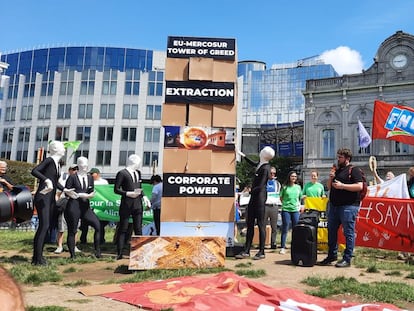 Miembros de distintas organizaciones se plantaron frente al Parlamento Europeo para demandar el abandono del convenio