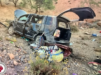 El vehículo se despeñó por un barranco de Granada y rodó dando vueltas a lo largo de 40 metros, pero la carga amortiguó los golpes y las seis personas que viajaban, entre ellas dos menores, resultaron casi ilesas