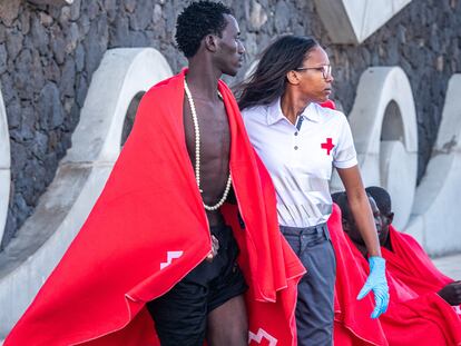 Seis embarcaciones arriban a la isla herreña desde la madrugada. Cientos de ellos empiezan a ser trasladados a Tenerife según tocan tierra