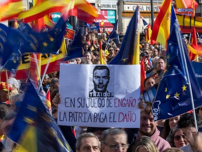 “Pedro Sánchez, dictador” o “España no se vende” son algunos de los lemas que se han escuchado en las concentraciones convocadas por el Partido Popular contra la amnistía