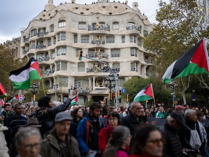 La marcha tiene lugar el día antes de la reunión en la capital catalana del octavo Foro Regional de la Unión por el Mediterráneo