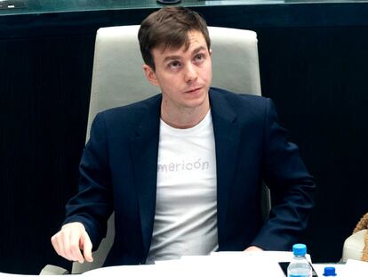 El portavoz de Vox en la capital se encaró durante un pleno con el concejal de Más Madrid, al que tiró encima una botella al golpear su escaño