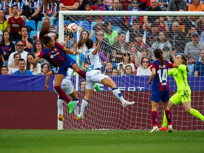 Las azulgrana, ganadoras de Liga y Supercopa, someten al equipo donostiarra con una superioridad abrumadora y encaran el gran reto de derrotar al Lyon en la Champions el próximo sábado para lograr un póquer inédito