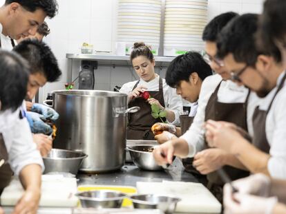 Oriol Castro, Eduard Xatruch y Mateu Casañas muestran a EL PAÍS la rutina del local de Barcelona que ha ocupado este 2024 el número uno de la lista de The World’s Fifty Best Restaurants