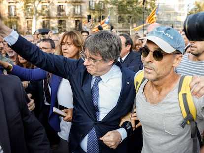 El regreso del expresidente de la Generalitat solo consigue reunir a tres millares de manifestantes en el centro de Barcelona