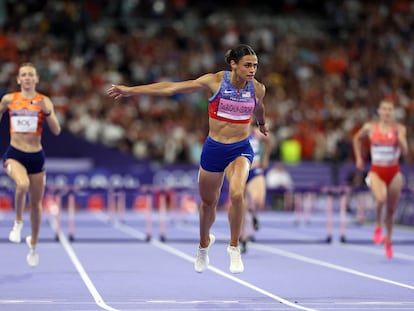 La neerlandesa Femke Bol sucumbió al intentar seguir el ritmo imponente de la norteamericana en las primeras vallas y termina tercera