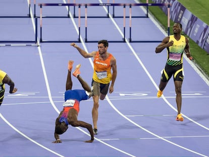 Pese a una mala salida, que le lastra, el atleta valenciano remonta hasta la cuarta plaza en una final olímpica en la que Grant Holloway logra por fin el oro que le faltaba