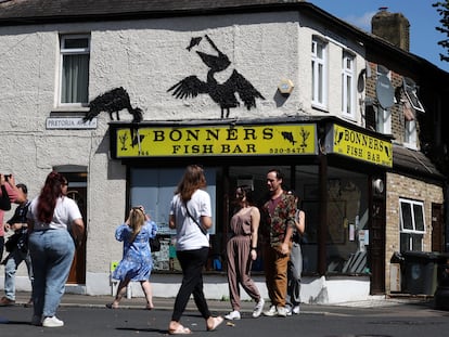 El elusivo artista callejero revela una nueva obra cada día desde el lunes de la semana pasada en diferentes puntos de la capital inglesa con dibujos de cabras, elefantes, lobos y gatos. La última pieza se ha descubierto este martes en una persiana del zoo de la ciudad