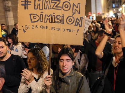 La segunda gran protesta desde la catástrofe del 29 de octubre avanza por el centro de Valencia para exigir la dimisión del ‘president’ y críticar al Gobierno español por no intervenir con todos los efectivos disponibles