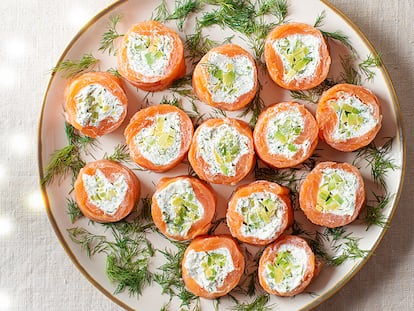 Te solucionamos el aperitivo navideño con unas galletas de anchoas y queso, rollitos de salmón con queso y aguacate, muffins salados, volovanes y caracolas