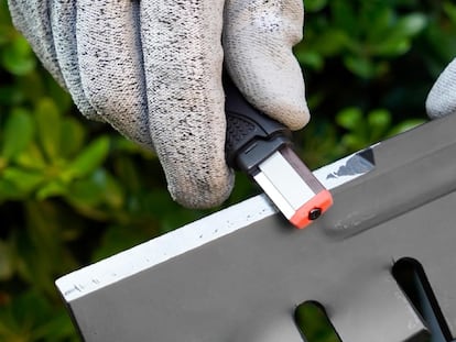 Afila las tijeras de podar, el hacha del cobertizo o el cuchillo multiusos con este práctico accesorio: integra una hoja fabricada en carburo de tungsteno resistente