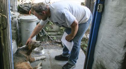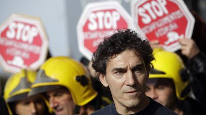 El bombero sancionado hace meses por negarse a participar en el desahucio de una octogenaria se subió al tejado junto a otros activistas para apoyar a los vecinos afectados