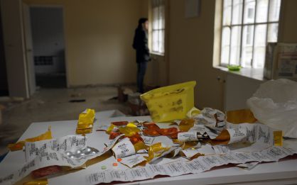 Los medicamentos se acumulan en un recinto que tiene sus puertas abiertas. En las oficinas que usaban los sindicatos en el hospital de Toén se amontonan contratos de trabajadores