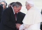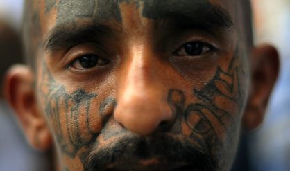 Miembros de la Mara Salvatrucha asisten a un oficio religioso celebrado en la cárcel salvadoreña.