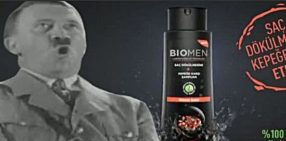 Imagen del anuncio de un champú turco que utiliza a Hitler.
