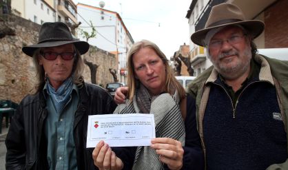 Residents of Rasquera show off the voting form for the referendum on the marijuana plan. / JOSEP LLUÍS SELLART (EL PAÍS)