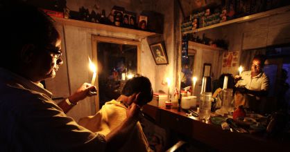Un barbero trabaja con la ayuda de una vela en Calcuta. / Bikas Das (AP)
