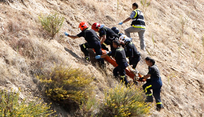 La unidad subacuática de los Bomberos del Ayuntamiento de Madrid recupera el cadáver, que estaba flotando en una laguna
