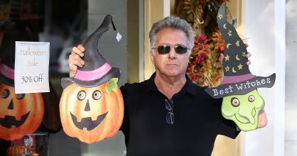 Todos los movimientos de los famosos, en fotos... en la imagen, Dustin Hoffman muestra las caretas que utilizó en la noche de Halloween. FOTO: Gtres