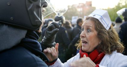 Manifestación en defensa de la sanidad pública frente al parlamento madrileño