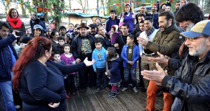 Israel Galván, que actúa en la capital francesa, baila para los romaníes del campamento de Ris-Orangis, a las afueras