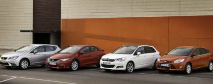 Cuatro familiares de tamaño medio con carrocerías de cinco puertas y motores turbodiésel de bajo consumo