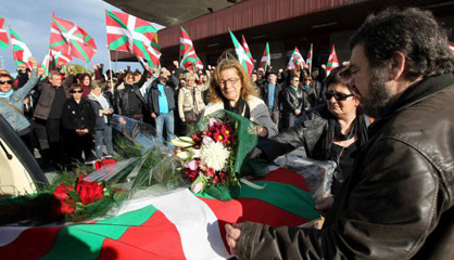 Unas 200 personas han recibido esta mañana con vítores y vivas a ETA el féretro del exdirigente etarra en el aeropuerto de Loiu